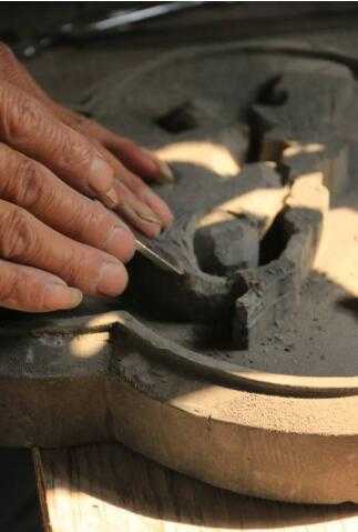 砖雕是一种细活,雕刻时要用“软硬劲”。匠人不仅要心灵手巧,而且要有一定的美术造型能力。其次是要有专用的好砖材。在技法上复杂多样,根据其雕刻深浅,可分为线雕、平雕、浅浮雕、圆雕、透雕等。