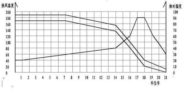 1)在上面的干燥曲线图中双线为热风相对湿度。