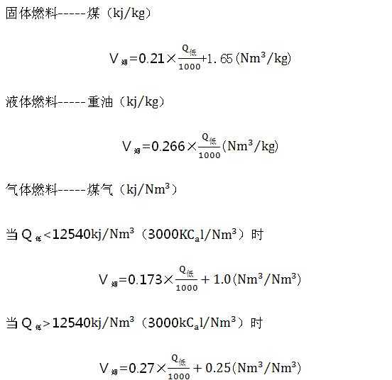 要获得过量空气系数,首先应算出理论空气量,现就燃烧1Kg标煤的理论空气用量算法举一例: