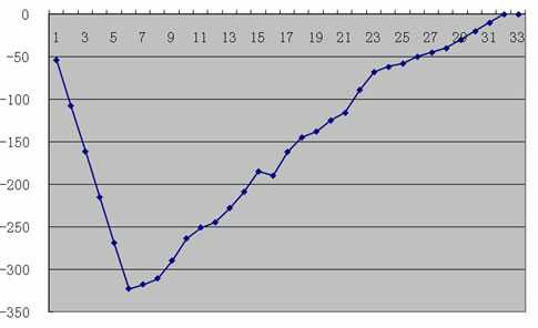 压力曲线:在进窑的风量和风压确定后,抽烟、送热、冷却风机的风量克服窑的阻力形成隧道窑中的各个车位的风压,其含义是间接监测鼓风风量、送热风量、抽烟风量,风压平衡而达到风量基本平衡。大断面隧道窑的零压点一般在最高温度车位的前一个车位到后一个车位之间,当抽烟风机转速一定时,零压点越靠向进车端,风量越大;小断面隧道窑为全窑负压,负压越大,风量越大,零压点在出车端。