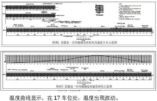 直通道一次码烧隧道窑结构及温度分布示意图见附图1、温度曲线示意图见图2。