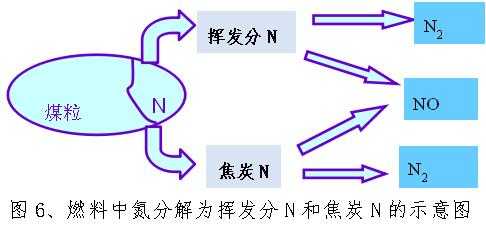 图7、燃料中氮分解为挥发分N和焦炭N的示意图