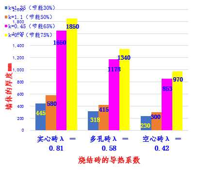 [1]图1、不同节能设计标准下单一材料实心砖、多孔砖、空心砖墙体需要的厚度(mm)