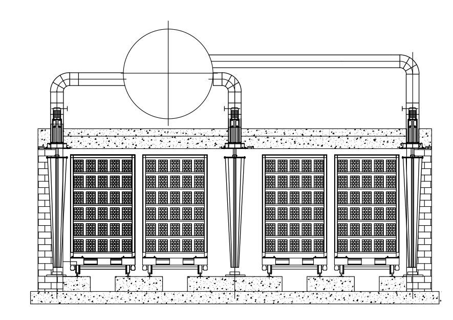 图2为四通道干燥室采用分层送风梯度干燥和顶排潮技术,运用微负压干燥工艺 。