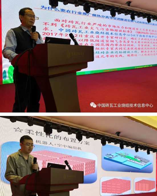 会上专家们通过不同视角,对我国装配式建筑的现状、未来装配式建筑发展的方向、装配式建筑与烧结砖的结合、国内外装配式建筑的对比等,为大家做了深入浅出的剖析讲解,会场不时爆发出热烈的掌声。通过他们的报告,使在场代表对装配式建筑有了更深的认识和更新的思路。而后,姬广庆老师做《烟热分离等促进隧道窑烟气达标排放技术应用的总结》,姬老师在发言对中心多年来在烟热分离与促进隧道窑烟气达标排放方面所做的工作,取得的成绩给大家做了全面而详细的汇报。