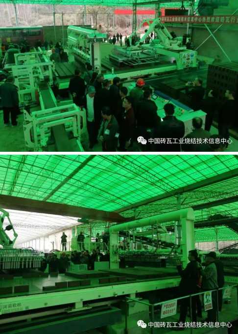 午餐后,大家乘坐大巴车前往贵港市恒盛新型建材有限公司参观,一到现场大家就对该公司的厂容厂貌发出了赞扬之声。该项目为4.8米大断面,使用一台1.6吨欧帕重型码垛机器人,可以生产标砖、多孔砖、空心砌块等多种规格砖型。