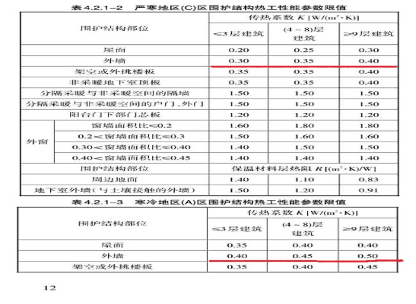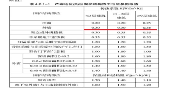 3、甘肃省节能75%标准对外墙传热系数k的要求