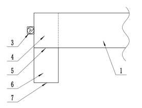为了解决每次升降窑门对窑内焙烧气氛带来的干扰问题,采用过渡室的平流排烟方式是不错的解决方案。其过程非常好理解,窑车入窑的时候开启第一道门7,进入预备室6后关闭第一道门7,开启第二道门5,然后窑车进入进车室4,顶车机(或步进机)将窑车顶进隧道窑1内焙烧。这个过程最大限度的降低了升降窑门对窑内焙烧气氛的影响,还有一个显而易见的好处是排烟口是固定在进车室4的端面上的,消除了连接软管反复升降容易破损带来的一系列问题。