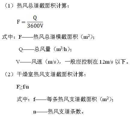 (3)干燥室热风支道出风口的总面积,应为热风支道截面积的150%~200%。