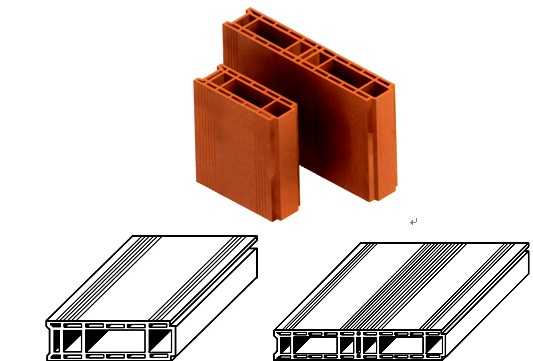 另外的一个实例就是内隔墙使用的空心砌块。由于建筑物内隔墙材料的需求量非常大,特别是住宅建筑,所以在发达国家的烧结墙体材料,都非常重视内隔墙材料,如西欧各国均在内隔墙用烧结空心砖、空心砌块(板材)等方面研究开发了许多种产品。内隔墙用空心砌块或砖又分为分户墙用及分室墙用的不同性能、厚度的产品。如法国研究开发的“卡罗”(Caroo)空心条板(主要用于隔墙,非承重),其厚度为100mm左右,安装时不用砂浆,其接缝企口设计的非常精确。又如法国Guiron-Toulouse公司生产的宽度为600~700mm,高度为2600-3600m,厚度为300mm的空心条板,将砌块、空心砖的断面构造设计,特殊的干燥和焙烧技术的发展,提升到了一个全新的层次。砖砌体的抗压强度也不再因灰缝而降低20%~50%了。西欧、北美、中东各国及南韩、日本、澳大利亚、巴西等国家均在生产着多种品种的隔墙用空心砖(砌块),有专用于分户墙的、有专用于分室墙的;也有专用于楼梯间、电梯间、卫生间等的隔墙砖。有的国家对这类产品还制定有专门的标准。隔墙砖分为承重和非承重的两大类,但其厚度较外墙砖要薄的多。这就给我们了一个非常重视的提示:即为了增大室内有效使用面积,不能单靠减少外墙隔热保温所必需的厚度来达到目的,实际上内隔墙厚度上的减小对增大室内有效使用面积更有重要的意义,因室内隔墙的周长远大于外墙。例如西欧很多国家生产的非承重分室隔墙空心砌块、空心砖仅60mm厚;分户隔墙仅100~120 mm厚,其密度德国标准规定在510~1000公斤/立方米之间,换算为面密度时也仅为50~100公斤/平方米之间。这与我国现用的各种板材的面密度相当,但是用烧结的隔墙空心砖或空心砌块砌筑的隔墙其性能上要比现用的各种板材的性能好的多,例如在使用寿命期内的尺寸稳定性上(绝对不会开裂)、在与砂浆的粘结性能上、在可长期保持砌体强度上、在隔音、防火性能(80mm厚的烧结空心砖或空心砌块,耐火等级为F90,即出现火灾后有90分钟的时间转移财产或逃生)上及在对室内环境的贡献等各个方面均优胜于现用的一些板材,有着非常均匀平整的粉刷基准面,而且造价比现用板材低的多。从生态学角度讲,这类材料的使用寿命长,并在其使用寿命终结后可全部回收利用。而且这类隔墙材料在建筑造价上也远低于现用的抗碱玻璃纤维网格布与低碱度水泥制造的板材,其综合能耗也低。承重用的内隔墙空心砌块、空心砖在墙的厚度上也完全可以减小到120~180mm。如果在这种类型的内隔墙空心砌块孔洞内加入保温隔热材料(无机材料)就完全可以满足分户墙之间的保温隔热要求。下图2为意大利烧结的水平孔内隔墙空心砌块。