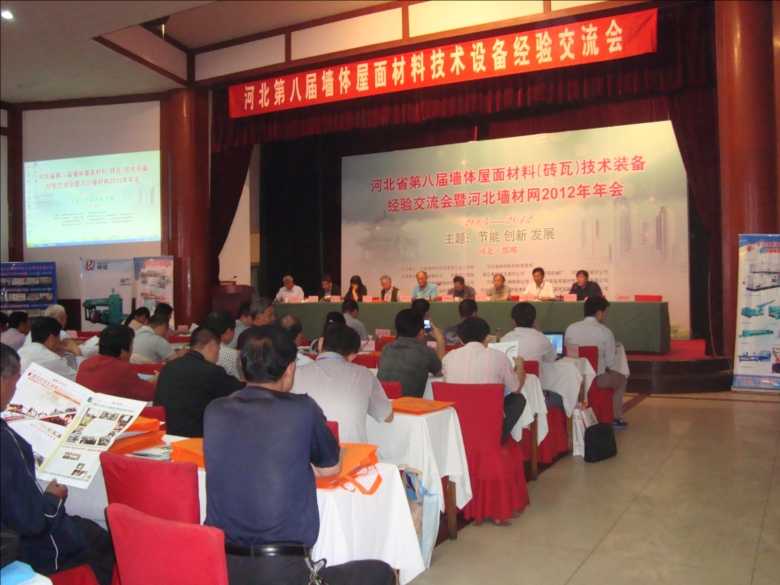2012年9月12日至14日,由全国墙体材料科技信息网企业工作部、河北墙体材料科技信息网主办的河北省墙体屋面材料技术设备、经验交流会暨河北墙材网第八届年会在邯郸市邯郸饭店召开。
