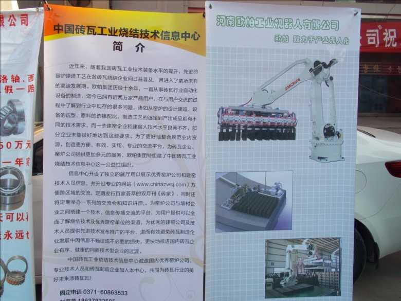 会议期间进行了墙材机械、配件辅机、窑炉公司、自动化仪表等企业形象及产品展示,举行了关于国家标准GB13544-2011烧结多孔砖和多孔砌块、我国墙体材料工业面临的新形式及新任务和墙材(砖瓦)先进机械装备产品的专题报告,开展了利用隧道窑余热锅炉蒸汽生产加气混凝土技术讲座,和隧道窑节能技术经验交流会,并进行了相关专业答疑。会议次日,主办方组织参观了利用隧道窑余热蒸汽生产加气混凝土生产线、全煤矸石烧结砖及窑炉生产线和4米断面干烧一体隧道窑及制砖生产线,其中欧帕集团的的自动码坯系统受到广泛关注和好评。