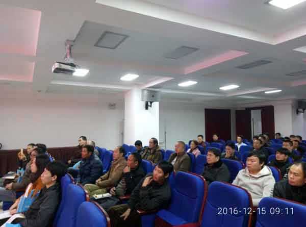 12月15日,从云南省四面八方赶来的近百位砖瓦同仁,早早的来到砚山烟草大酒店会议室等待上课。此期培训班,我们特邀甘肃省墙材协会秘书长、业内高级工程师姬广庆,针对云南砖瓦同仁想了解的如何节约成本、裂纹防治等方面进行授课。课上,姬老师从:隧道窑生产烧结砖的节能措施、裂纹产生的机理与减少裂纹的方法;隧道窑的节能、发展方向;设计、建设方面的节能措施;生产、管理方面的节能措施;烧结砖裂纹产生的机理与减少裂纹、产品缺陷的措施几个方向进行详细的讲